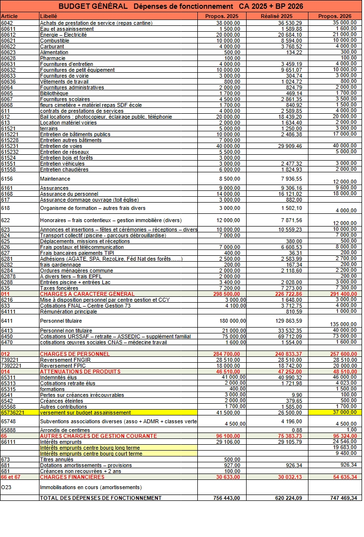 BUDGET ASSAINISSEMENT